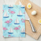 Pink Flamingo Blue Sailboat Tropical Nautical Geschirrtuch