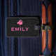 Elevate your travel style with our luggage tag design, featuring a vibrant watercolor pink flamingo, custom pink typography, and a sleek black paisley background. Make a statement wherever you go.