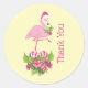 Pink Flamingo in Weihnachtsmannmütze Whimsical Dan Runder Aufkleber