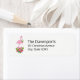 Adresse Labels mit einem tropischen Thema Weihnachtsbramingo mit einer rosa Weihnachtsmannmütze. Unter seinen Füßen befindet sich ein Bonbons mit hübschen tropischen Blume und rosa Beeren. Ein Gezeter heiliger auf der Brust.