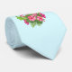 Eine Krawatte mit einem tropischen Thema Weihnachtsbramingo mit einer rosa Weihnachtsmannmütze. Unter seinen Füßen befindet sich ein Bonbonbons mit hübschen tropischen Blume und rosa Beeren. Ein Gezwitscher der Heiligen auf der Brust.