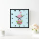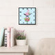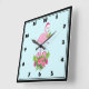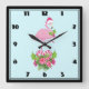 Pink Flamingo in Weihnachtsmannmütze Whimsisches W Quadratische Wanduhr