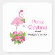 Pink Flamingo in Weihnachtsmannmütze Whimsisches W Quadratischer Aufkleber