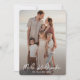Benutzerdefinierte Foto Mele Kalikimaka Karte mit einem Foto auf der Vorderseite und einem rosa und grünen tropischen Muster mit Lotus und rosa Flamingos auf der Rückseite.
