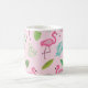 Das ist ein schönes rosa Flamingos-Muster mit grünen tropischen Blätter auf hellrosa Hintergrund. Es ist eine coole Kaffee-Tasse für Frauen, die Flamingos Liebe
