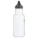 Wasserflasche mit Illustration eines rosa Flamingo stehend auf einem Bett von blumengeschmückten Blume mit grünen Palmen im Rücken schweben. Tropisch und hübsch.