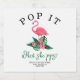 "Pop es. Wenn sie Pop!" Das Design der Baby-Dusche ist mit rosa Flamingo mit üppig grünen Palmenblättern und tropischen Hibiskus-Blume ausgestattet. "Aloha Baby" Ein tropisches Blumenmuster mit schwarzer Hintergrundfarbe zieht die Rückseite der Karte hoch.