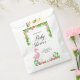 Niedliche Babydusche Gefallen Tasche perfekt für ein Dankeschön Geschenk. Das Design bietet eine Grafik mit tropischem Blattwerk und einem rosa Flamingo. Personalisieren Sie sich mit dem Namen der künftigen Mutter und einer kurzen Danksagung.