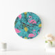 Pink Flamingos Palm: Exotic Hawaii Große Wanduhr