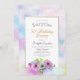 Eine blauen und rosa Blumenüberraschung 50. Geburtstagsfeier mit einer goldfarbenen und pastellfarbenen Wasserfarbenleiste.