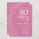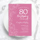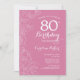 Rosa florale 80. Geburtstagsparty Einladung. Minimalistisches modernes Design mit botanischen Kontur Zeichnungen Akzente und Typografie Drehbuch Schriftart. Einfache, trendige Einladungskarte für eine stilvolle Damenfeier. Kann für jedes Alter angepasst werden. Gedruckte Zazzle Einladungen oder Sofortdownload digitalen druckbaren Vorlage.