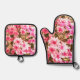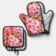Pink Floral Bloom Pattern Ofenhandschuh & Topflappen-Set