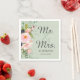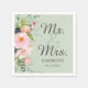 Pink Floral Bouquet Sage Green Mr. & Mrs. Wedding Serviette