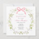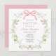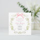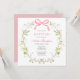 Die Einladung zur Taufe beinhaltet einen Blumenkranz in Aquarellfarben mit einem rosa Bogen. Personalisieren Sie Ihre Daten oder klicken Sie auf "Weitere Anpassungen vornehmen", um Schriftart Stile, Größe und Farben zu bearbeiten.