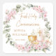 This design features an watercolor illustration of a gold colored chalice with a candle, surrounding by pink and white little flowers. You can adjust text according to your requirements.