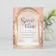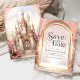 Amaze your guests with this lovely fairy tale theme wedding save the date featuring a beautiful castle and majestic arches with modern typography.