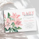 Elegantes Blumenbaby in Bloom Baby Dusche Einladung. Das Design ist mit schönen Aquarelllien, rosafarbenen Lilien und Grünpflanzen gestaltet. Verwenden Sie die Entwurfstools, um Text und Schriftart anzupassen. Auch als digitaler Download verfügbar.