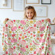 Pink Floral Girls Name Fleece Blanket
