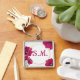 Pink Floral Gold Circle Keychain Schlüsselanhänger