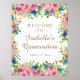 Pink Floral Gold Glitzer Quinceañera Willkommen Poster