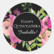 Pink Floral Green Blätter Black Happy Quinceañera Runder Aufkleber