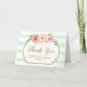 Baby Duschgeschenk Dankeschön Karten mit hellpastellfarbenen Minzgrün und weiße Streifen Muster, rosa Aquarell Vintage Blume und Golddetails.