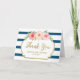 Baby Duschgeschenk Dankeschön Karten mit marineblau-weiß Streifen Muster, rosa Aquarell Vintage Blume und Golddetails.