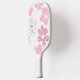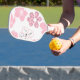 Pretty in pink pickleball paddle. A pink and white and black and white floral design that may look girlie, but the player certainly may not be.