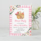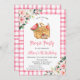 Pink Floral Picnic Basket Picnic Geburtstag Einladung Sweet pink Gingham Muster und rosa florale Picknick Geburtstag Einladung für Mädchen auch mit einer Wassermelone, Apfel und Kuchen Illustrationen.