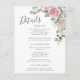Pink Floral Rose Wedding Details Enclosure Card Postkarte