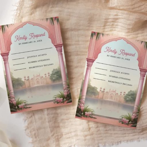 Erleben Sie Ihren Aufenthalt mit dieser eleganten Hochzeitsfeier, die mit schönen rosa Blume und Vintagen indischen Arkaden mit moderner Typografie aufwartet. Fügen Sie einfach Ihre Veranstaltungsdetails zu dieser einfach zu bedienenden Vorlage hinzu, um sie zu einer einmaligen Einladung zu machen.