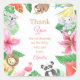 Pink Floral Safari Animals Birthday Thank You Quadratischer Aufkleber