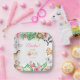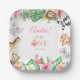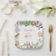 Serve up delicious party treats with these adorable watercolor safari animal paper plates. Featuring a lush tropical frame with hand-painted animals, including a lion, panda, elephant, giraffe, koala, and a sweet pink flamingo. Decorated with vibrant pink flowers and exotic greenery, these square plates are perfect for a girl's 1st birthday, "Wild One" party, or a jungle-themed baby shower. The central white square elegantly displays the birthday girl's name and date, making it a beautiful focal point for your table setting. Fully customizable and high-quality!