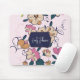 Bring a touch of nature's beauty to your workspace with this charming mousepad, featuring a delicate pink floral botanical design. The soft pink background is adorned with a cheerful array of stylized flowers in shades of peach, pink, and cream, accented by deep green leaves. A sophisticated navy blue label with elegant script showcases a personalized name, adding a unique and personal touch to this functional piece. This mousepad is perfect for anyone who appreciates vintage floral patterns and wants to add a pop of color and personality to their desk setup. Its smooth surface ensures optimal mouse tracking, making it ideal for both work and play. Embrace a blend of artistic charm and everyday utility with this exquisite botanical mousepad.