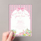Sweet and charming, this personalized birthday acrylic invitation features soft pink stripes, an elegant bow detail, and a whimsical tea party design with floral accents and a teapot illustration. Customized with your child’s name, age, party date, time, and event location, it sets the perfect tone for a stylish and memorable celebration. Ideal for a tea party birthday theme, this custom invitation adds a graceful and playful touch to your special day.