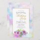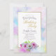 Eine blauen und rosa Blumenüberraschung Geburtstagsfeier mit einer goldfarbenen und pastellfarbenen Wasserfarbenleiste.