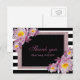 Imitats glänzend Pink Floral Schwarz-Weiß Streifen Danke Postcard