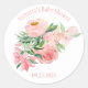 Pink Floral Wasserfarbe Name Datum Mädchen Kinderd Runder Aufkleber