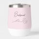 Herzlichen Glückwunsch zu einer schönen Hochzeit! Dieser rosafarbene Edelweintumbler zeichnet sich durch ein schlichtes und elegantes Design in der Blume aus. Für jedes Mitglied Ihrer Hochzeitsfeier individuell gestalten, indem Sie den Titel in Trauzeugin, Ehrenmatron, Brautjungfrau, Braut, Brautmutter, Bräutigam und vieles mehr ändern. Machen Sie sie noch persönlicher, indem Sie den Namen jeder Person auf der Rückseite hinzufügen. Ein perfekter Weg, um Ihre Lieben fragen, Teil der Hochzeit zu sein, oder ein persönliches Geschenk für die Vorbereitung auf den großen Tag.