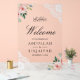 Amaze your guests with this elegant wedding welcome sign featuring beautiful pink roses and modern typography.