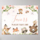 Pink Floral Woodland Tiere Kinderdusche Zeichen Poster