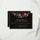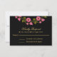 Eine wunderschön reiche und launische RSVP-Karte mit rosa Blumenkränzen in Aquarellfarben auf schwarzem Hintergrund. Dieses elegante Design verwendet eine Kombination aus Serif- und Script-Schriftart-Paarungen, um einen prachtvollen Stil zu vermitteln. Personalisieren Sie das gewünschte Antwortdatum des Beispiels mit Ihrem UAWG.