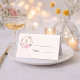 Guide guests to their seats with this elegant religious place card. The design features a delicate pink watercolor floral wreath surrounding a gold cross, accented by a graceful pink ribbon. This card is a beautiful and functional addition to the reception table for a girl's baptism, First Holy Communion, or Confirmation.