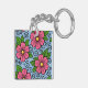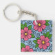 Pink Florals with Green Leaves and Curved Details Schlüsselanhänger