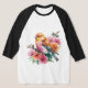 Watercolor painting features a small bird perched amongst blossoms. Get this artwork with products.