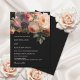 This vintage wedding invitation features dusty pink an purple flowers on a black background.