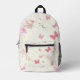 Pink Flowers, Butterflies, Pale Pink Background Bedruckter Rucksack