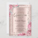 Pink Flowers Rose Gold Glitter Frame Crown Einladung
