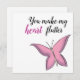 Eine stilvolle Valentinerkarte mit einem zarten rosa Schmetterling. "Du machst meinen Herzflatter" Weißt du schon, wem du das gewollt hast?