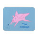 Anstrich eines rosa fliegenden Schweins mit einem Zauberstab, der blaue Sterne macht, mit einem Platzhalter für Ihre Nachricht, auf flexiblen Magneten gedruckt.